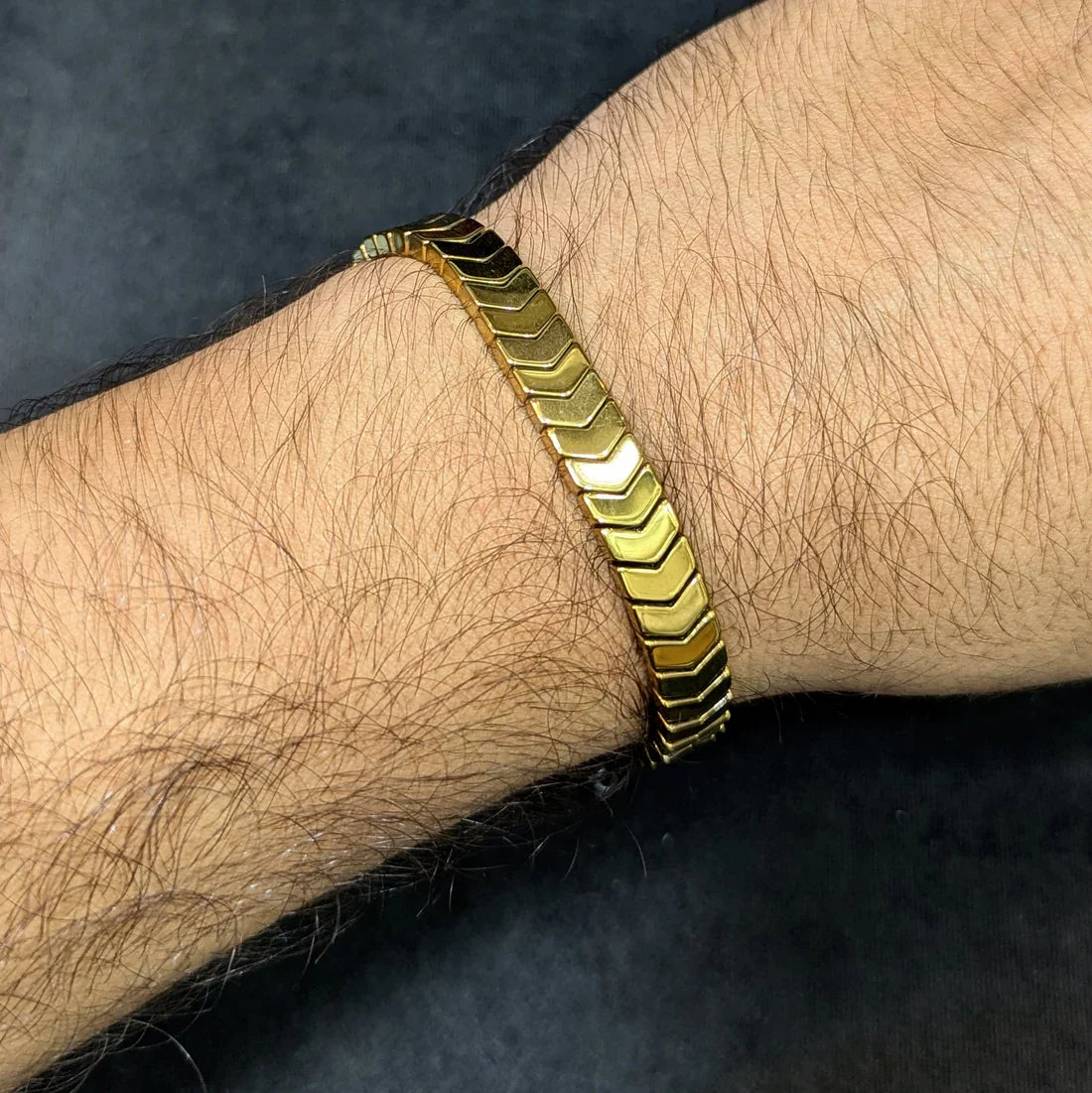 Bring style and positive energy to your wrist with this handcrafted Hematite bracelet. Designed in a unique chevron pattern, this bracelet combines elegance with the natural healing properties of Hematite. Known for promoting balance, grounding, and strength, Hematite is a powerful stone that also makes a bold fashion statement.